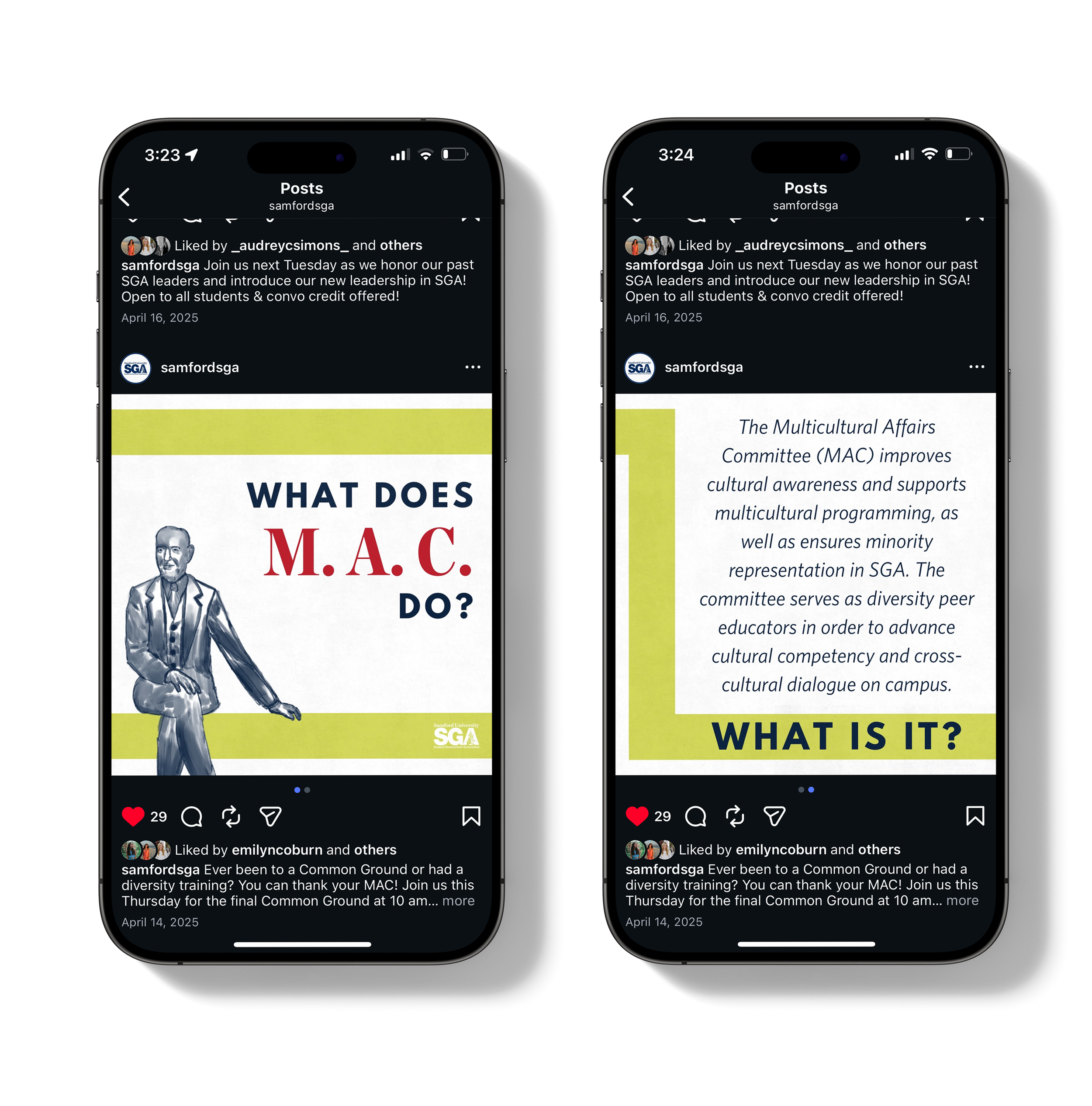 For my role as a Graphic Designer on the Samford SGA Public Relations Committee, I designed a “What Does ___ Do?” social media series to educate students on the different branches of SGA. The design centers on clarity and accessibility, with each post breaking down the committees in SGA into easily digestible information. I carried this concept throughout the series using a consistent layout system, bold typographic hierarchy, and Samford’s color palette to create a cohesive and recognizable set of graphics across Instagram.